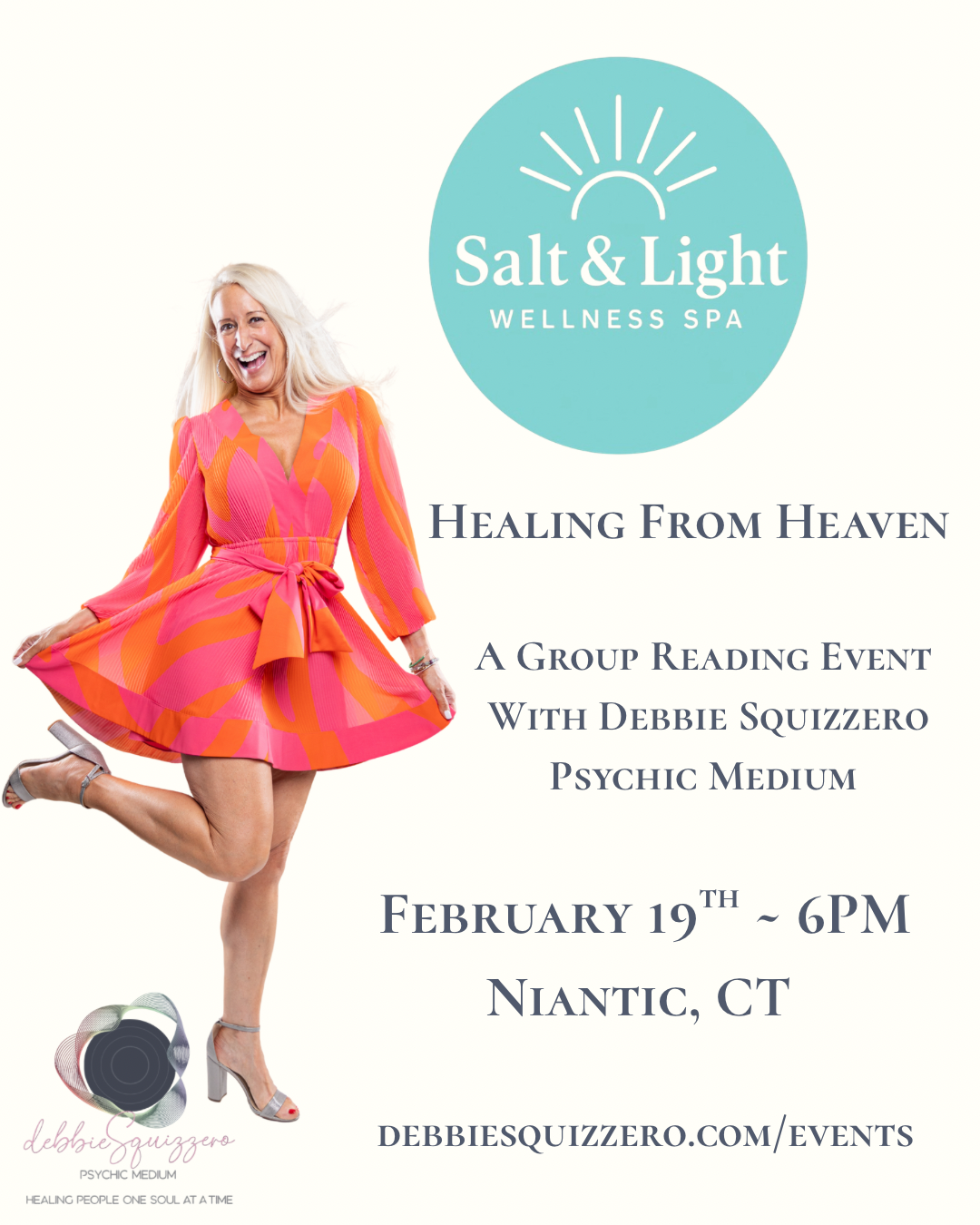Join us as we welcome Debbie Squizzero, Psychic Medium, to CT Salt and Light Wellness Spa for a group reading. The groups are always divinely guided, and come together for the purpose of love, connection, comfort, and inspiration. It is truly a healing experience for all who attend.